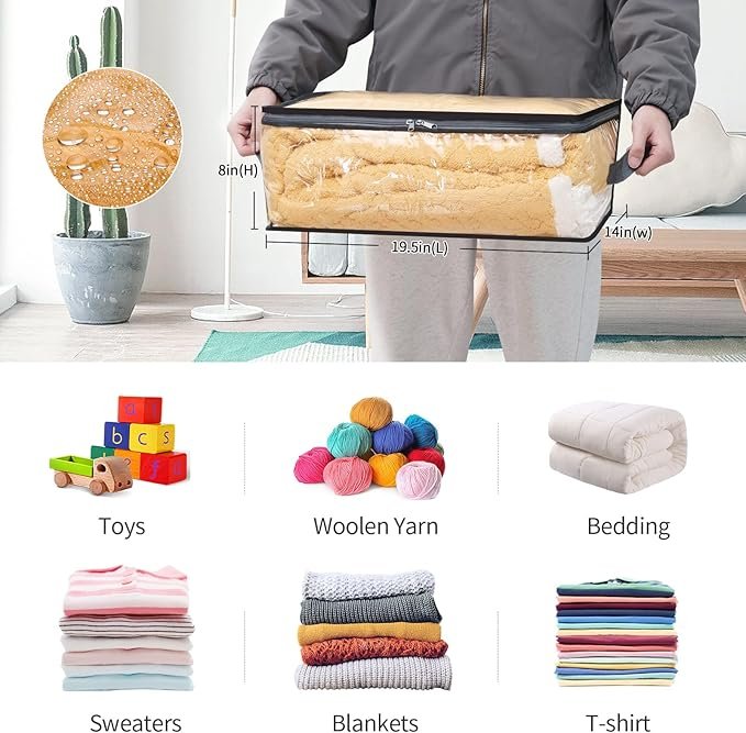 完璧な収納バッグ:このセットには、4個のグレーの透明収納バッグ(サイズ:19.5x14x8インチ、容量35L/9.5ガロン)が含まれており、狭いクローゼットや引き出し、クローゼットの上棚、ベッドの下に季節ごとの衣類を便利に収納するのに最適です。