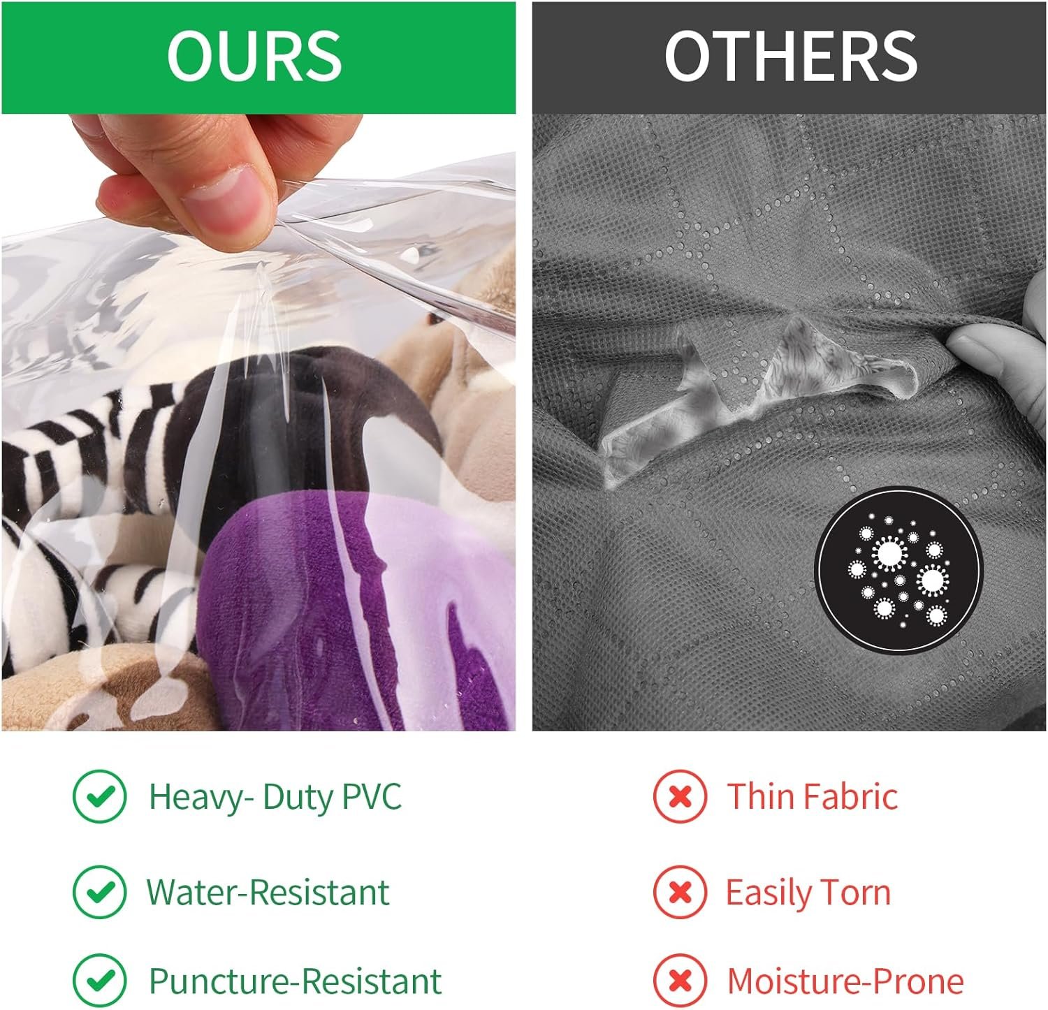 透明デザイン:収納バッグは防水性と耐穿刺性のPVC生地で作られており、頑丈で透明度が高いです。PVCのにおいが消えるまで数時間かかることがありますが、その後はクリアなデザインを楽しむことができます。