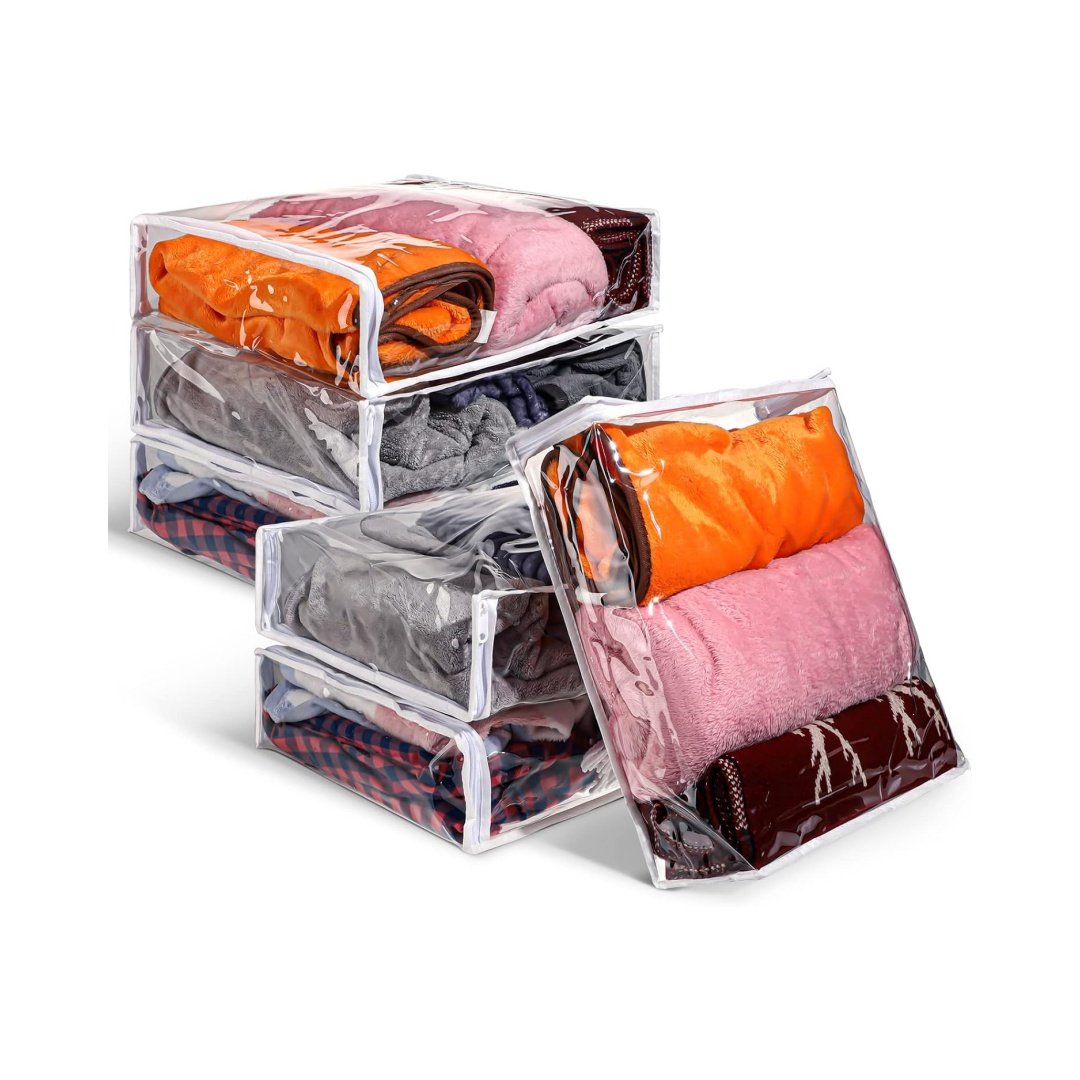 【幅広い用途】これらのジッパー付きプラスチック収納バッグは、衣類、ファブリック、キルト、シーツ、ブランケット、化粧品、クッションなど、収納したい物を実用的かつスペースを節約して収納するのに適しています。