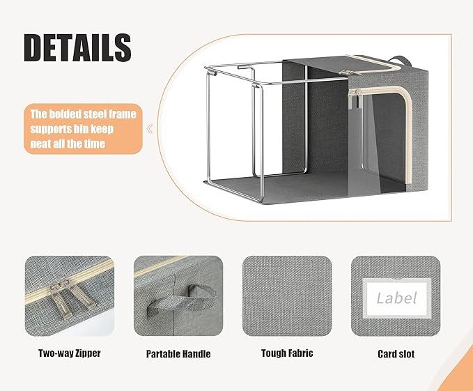 【改良されたハンドル&フレーム】強化されたハンドルは人間工学に基づいたデザインで、科学的な方法で移動が簡単にできるようになっています。内部には太いワイヤーが使用されており、運搬中でも収納ボックスを整った形で保ちます。布製品を扱う際の頼れる助っ人です。