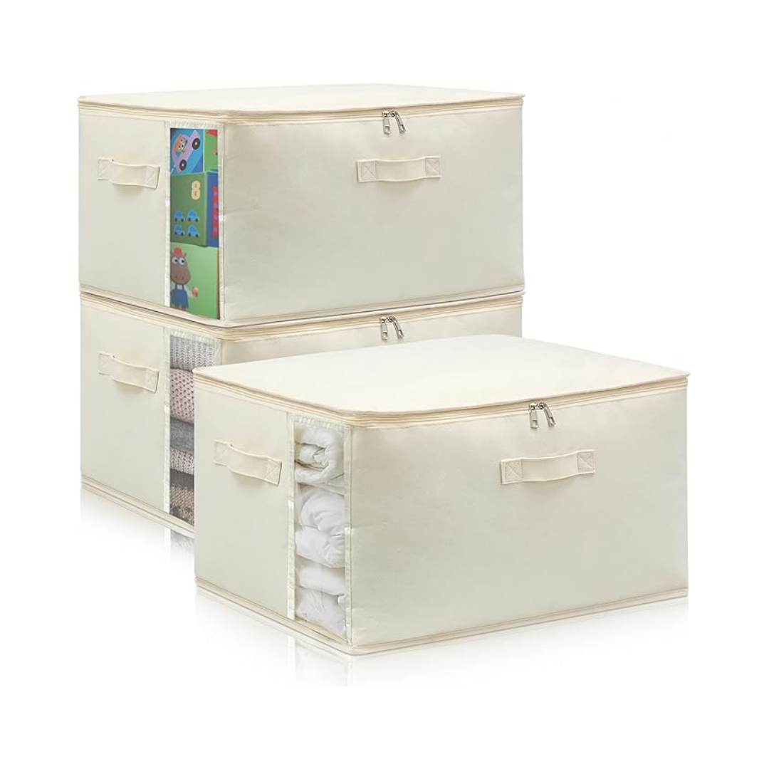 3個セットのクローゼット整理用容器、無臭素材、90%の純綿と10%のポリエステルウール製の整頓用ジッパー付き収納バッグです。