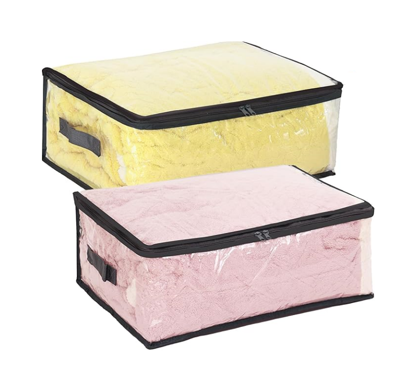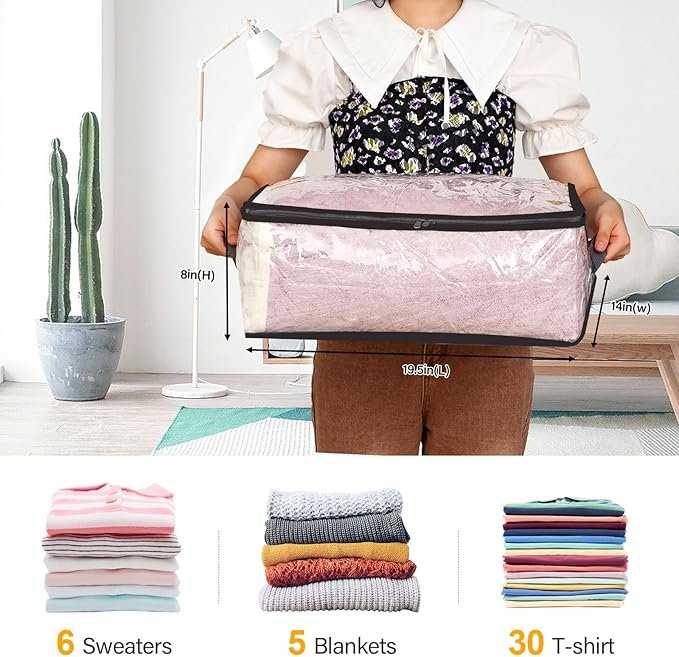 このセットには、2つのグレーのクリア収納バッグ(サイズ:19.5 x 14 x 8インチ)が含まれており、各バッグの容量は35L(9.5ガロン)です。季節ごとの衣類を狭いクローゼットや引き出し、クローゼットの棚の上やベッドの下に便利に収納するのに最適です。