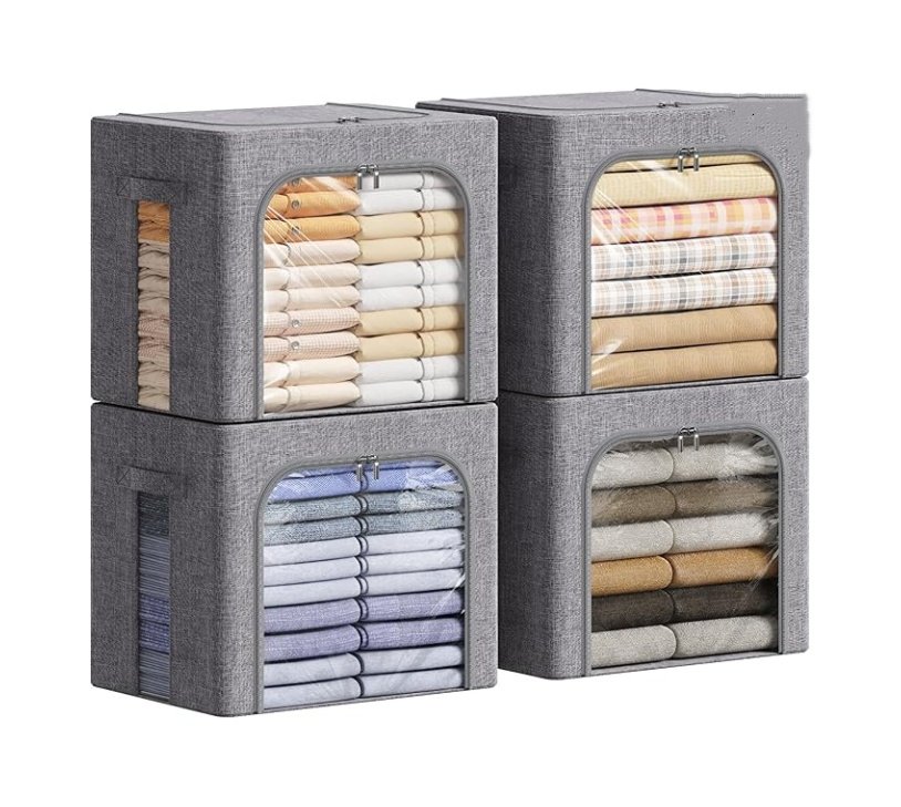 高密度カチオン生地で作られたこれらの衣類収納ビンは、丈夫なスチールフレームと底部の段ボールにより優れた耐荷重性を提供し、前面と側面のPVC透明窓が視認性を向上させます。