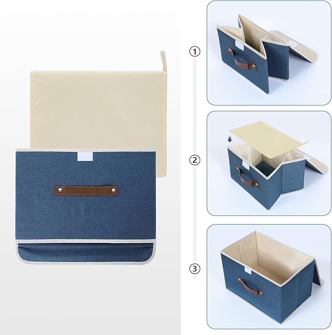 この収納ボックスはスペースを節約できるデザインで、使用しないときには簡単に組み立てたり折りたたんだりできます。付属のフタがしっかりと保護し、物が汚れるのを防ぎます。