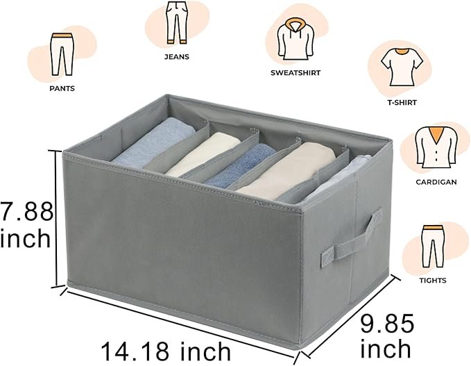 広々とした仕切り: 5つの広い仕切りを備えており、ほとんどの折りたたみ衣類にぴったりフィットします。シャツやジーンズ、セーター、アクセサリーなどを簡単に整理でき、収納スペースを最大限に活用し、すべてをきちんと整頓できます。散らかった衣類の中から探し回る必要はありません—必要なものを瞬時に見つけることができます。
