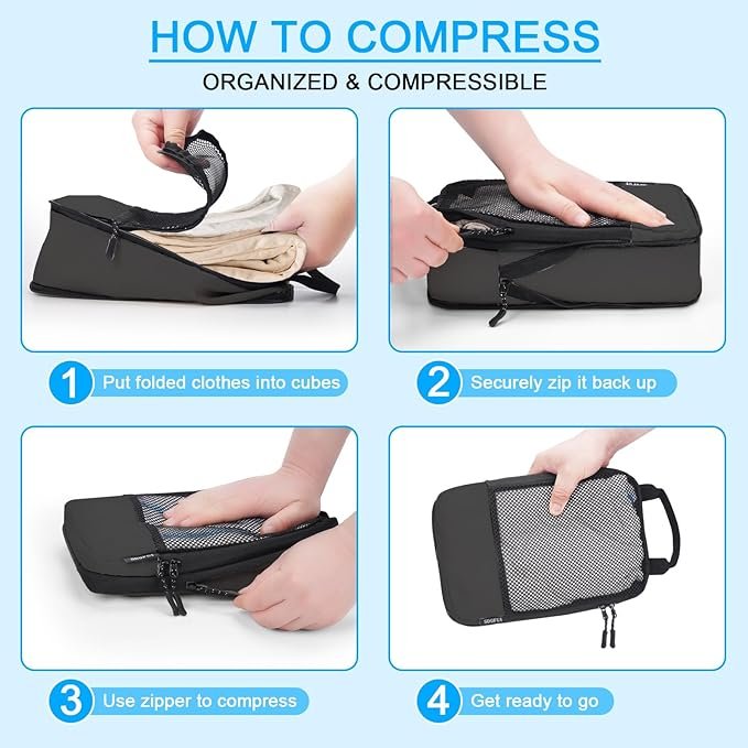 整理整頓の必需品: これらの圧縮スーツケースオーガナイザーは、旅行、ハイキング、キャンプなど、あらゆる旅行ニーズに最適です。私たちの4セットの圧縮旅行オーガナイザーは、20インチのキャリーオンや22インチの荷物、バックパック、ダッフルバッグ、トートバッグなどにぴったりフィットします。