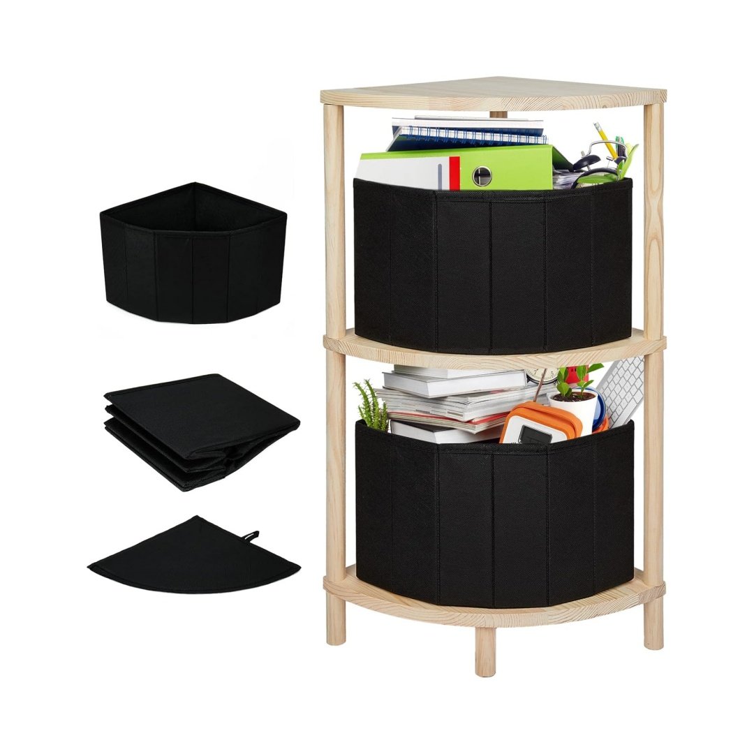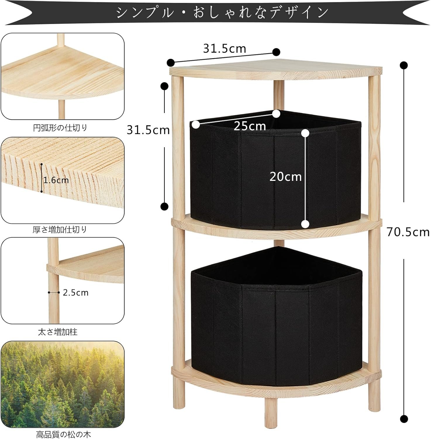 • 【高品質の木組み+収納ケース2つセット】市場にある普通のコーナーラックと違い、こちらの物置棚は高品質の天然松の木で作られ、環境にやさしい同時に頑丈で長持ちです。各段階が10kgまで耐えられ、全体30kgまで荷重可能。また、見た目がよく、実用性が高い収納ケースも付いております。