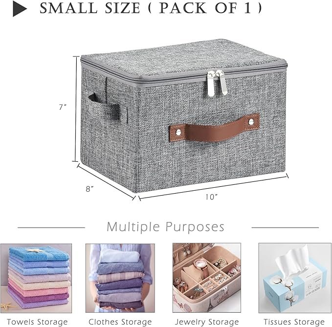 1パックの小型布製収納ビン、サイズは長さ10インチ、幅8インチ、高さ7インチです。