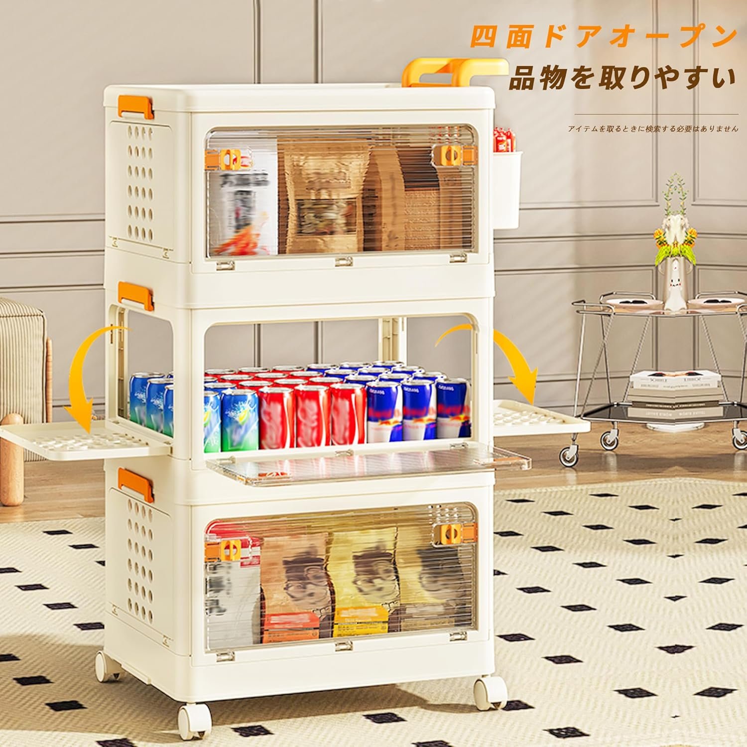 • 【5方向開き収納ボックス】 サイズ幅56×奥行36×高さ64 5面から物の出し入れが可能、収納にさらに便利です。蓋付き側面から物が取られる、何段が積まれていても箱を運んで物を取る必要がない。奥の物を取り出すときも正面からだけでなく横から取り出せて収納の幅が広がります。