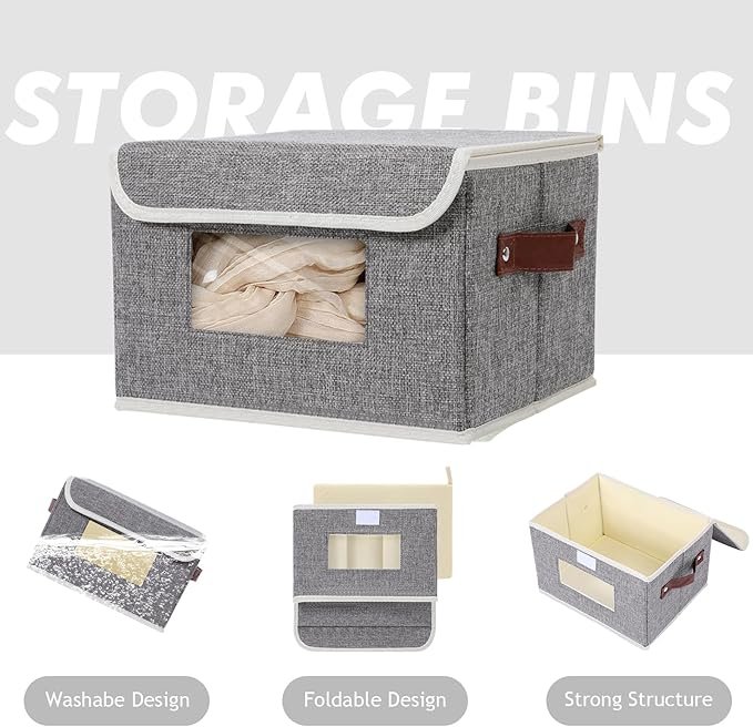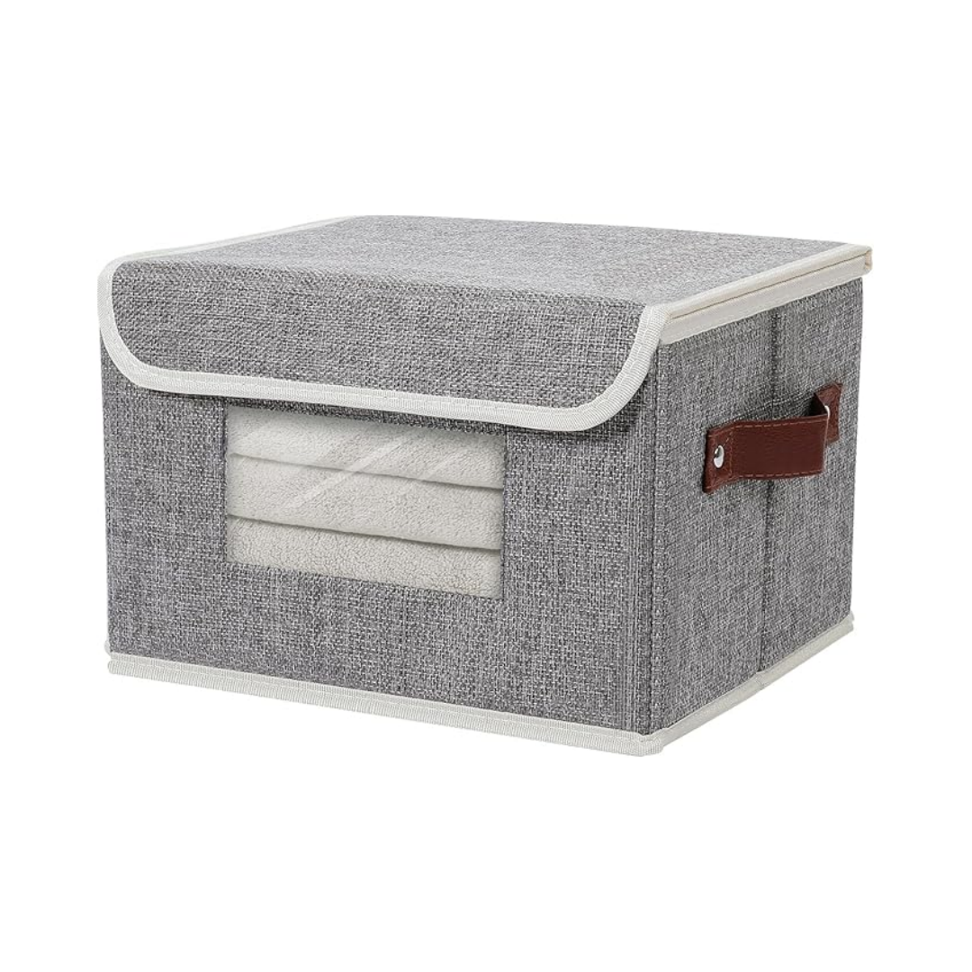 1パックの小型蓋付きファブリック収納ビンが含まれています。サイズは長さ10インチ、幅8インチ、高さ7インチです。