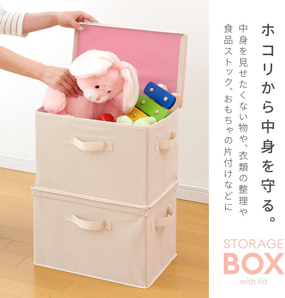 • 【ホコリからガードできるふた付き】フタ付きなので、ホコリや汚れを防いでくれます。中身を見せたくない物や、衣類の整理や食品ストックおもちゃの片付けなどに!
