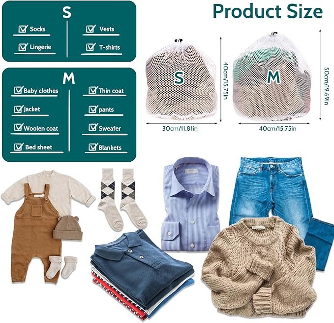洗濯機用のメッシュランドリーバッグ2個セット(サイズ:12 x 16インチ、16 x 20インチ)が含まれています。2つのサイズは家庭用、旅行用、ジム用に適しています。