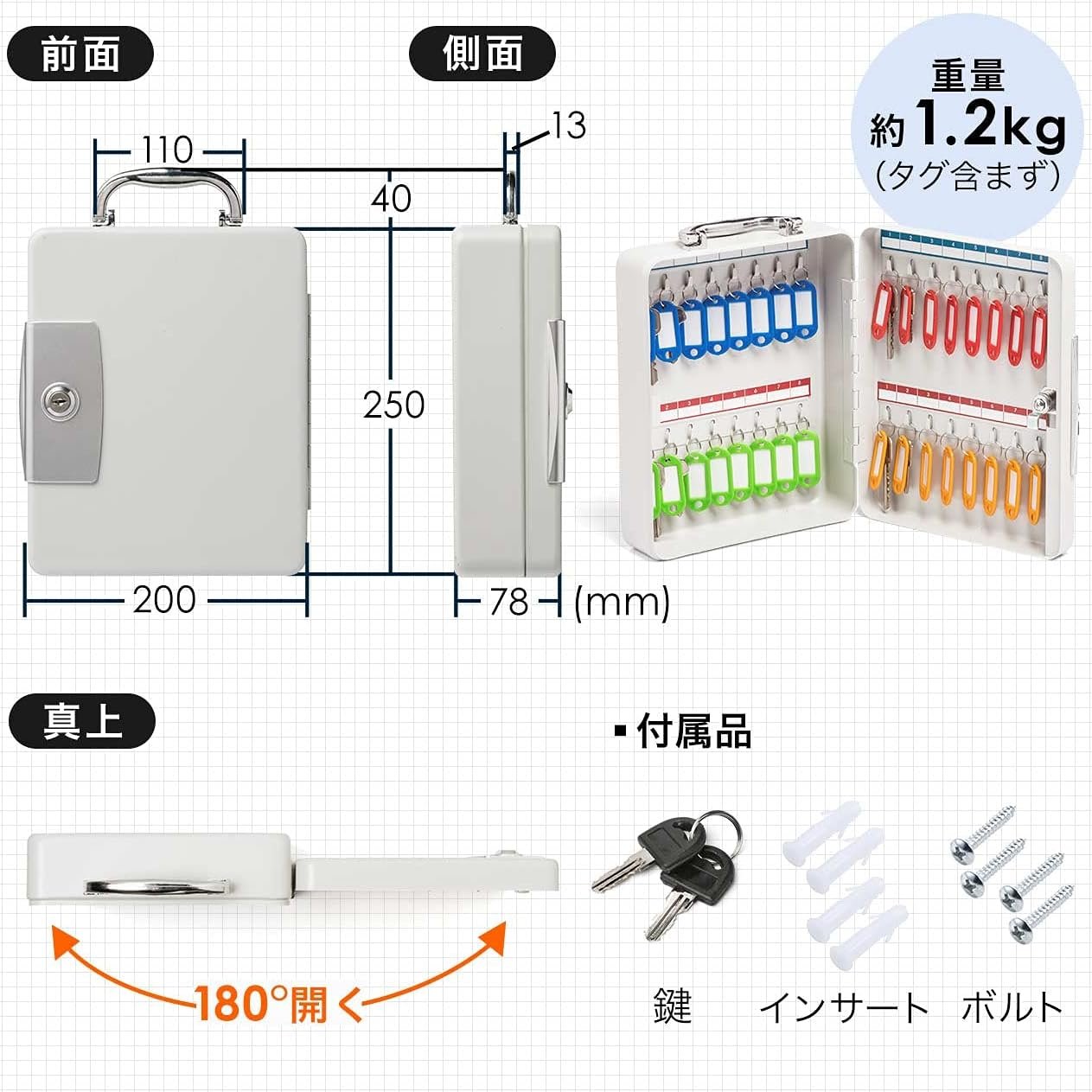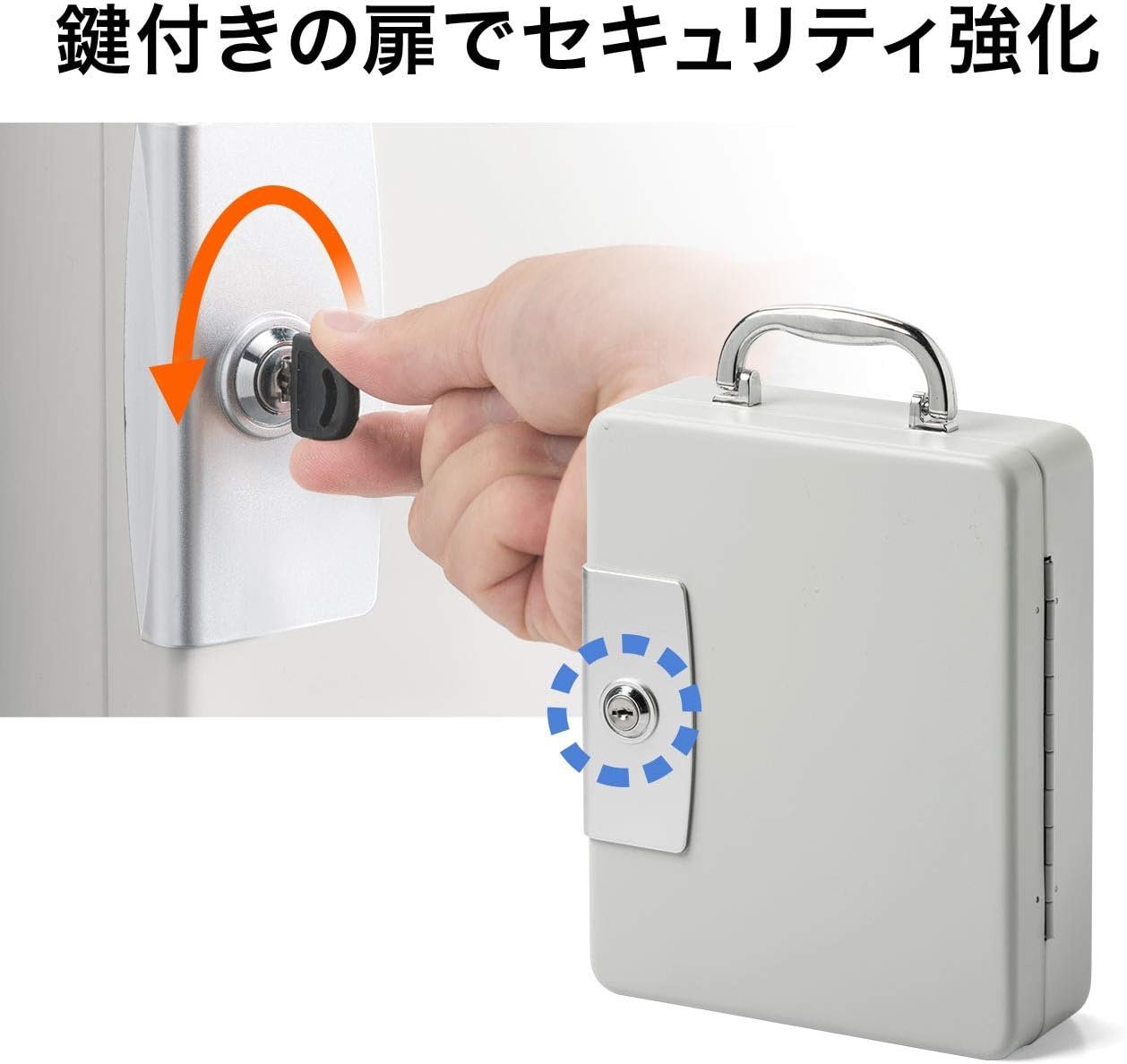 • 32本の鍵を一括収納できるキーボックスです。持ち運びしやすい取っ手付きです。