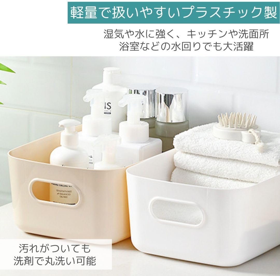 • 【耐久性に優れた高品質PP素材で水回りも安心】軽量で扱いやすいPPプラスチック製の収納ケースは、湿気や水に強く、キッチンや洗面所、浴室などの水回りでも大活躍。汚れがついても洗剤で丸洗い可能で、いつでも清潔をキープ。自宅や職場での小物整理に最適な多用途アイテムです。