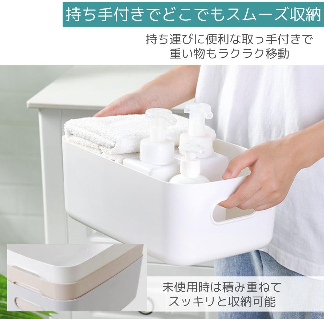 • 【持ち手付きでどこでもスムーズ収納】持ち運びに便利な取っ手付きで、重い物もラクラク移動。シンプルなデザインはお部屋の雰囲気に合わせやすく、未使用時は積み重ねてスッキリと収納可能。キッチンやリビングでの小物整理に最適な収納ケースです。