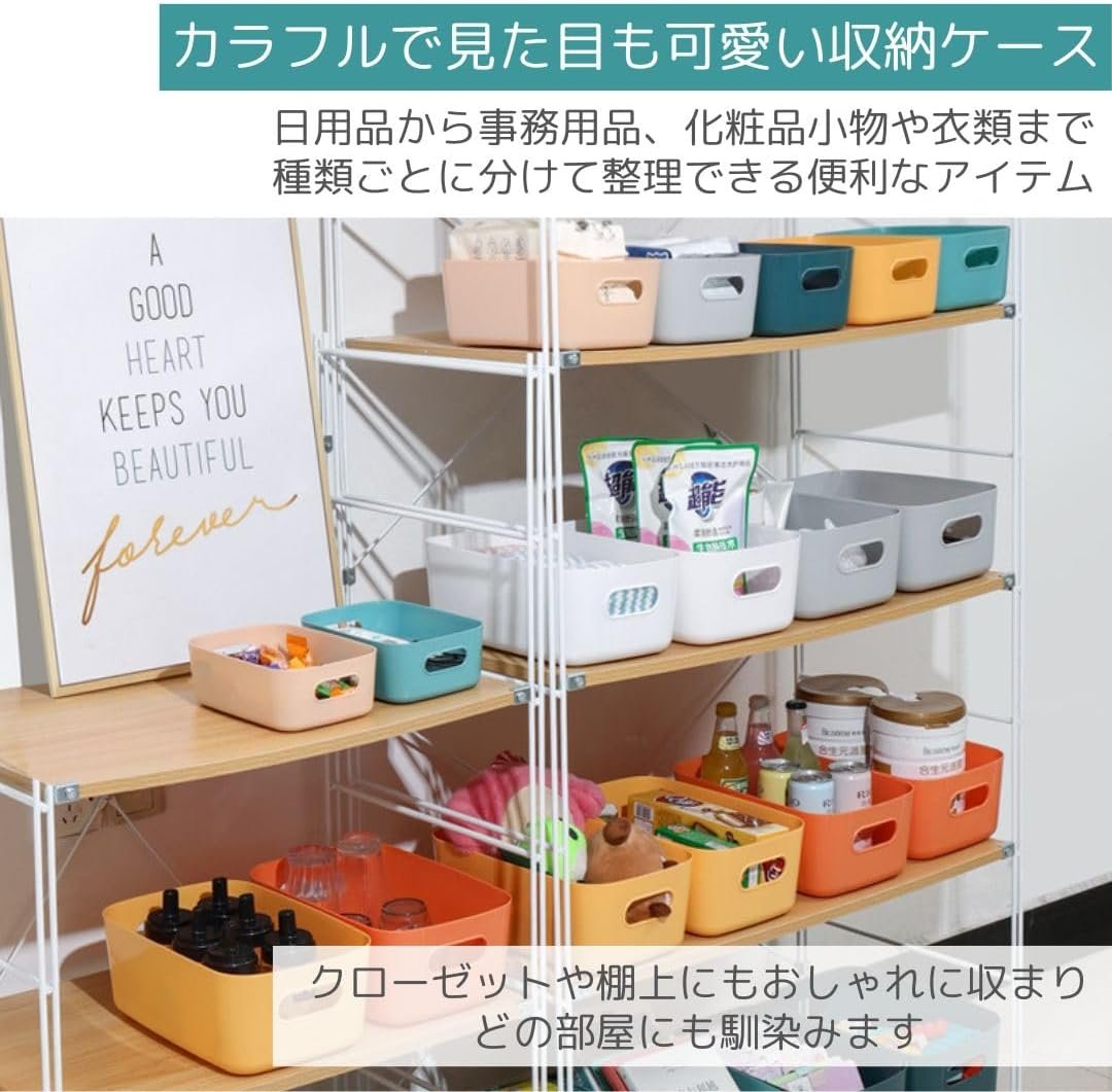 • 【カラフルで見た目も可愛い収納ケース】8個セットの収納ボックスは、小物や文房具、衣類まで種類ごとに分けて整理できる便利なアイテム。多彩なカラーバリエーションで、クローゼットや棚上にもおしゃれに収まり、どの部屋にも馴染みます。使い勝手の良いデザインで、日用品から事務用品、化粧品小物まで幅広く対応し、スッキリした空間を実現します。