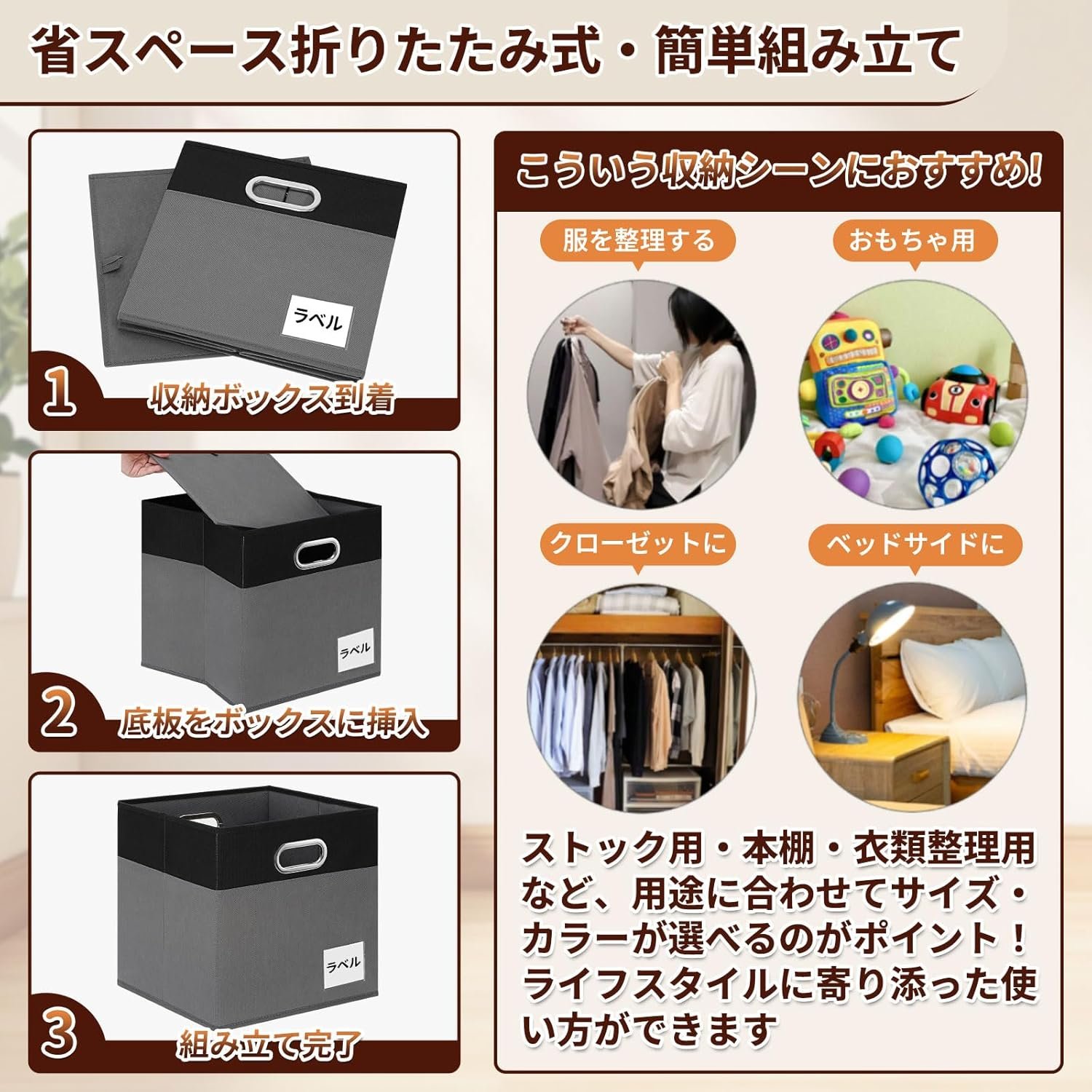 • 【多目的収納ボックス】ベビー用品、おもちゃ、衣類、靴、タオル、トイレタリー、本、事務用品、ペット用品の整理と保管に使用されます。理 想的な収納コンテナは、棚、クローゼット、寝室、居間、寮、書斎、バスルーム、洗濯室、オフィスに簡単に置くことができます。
