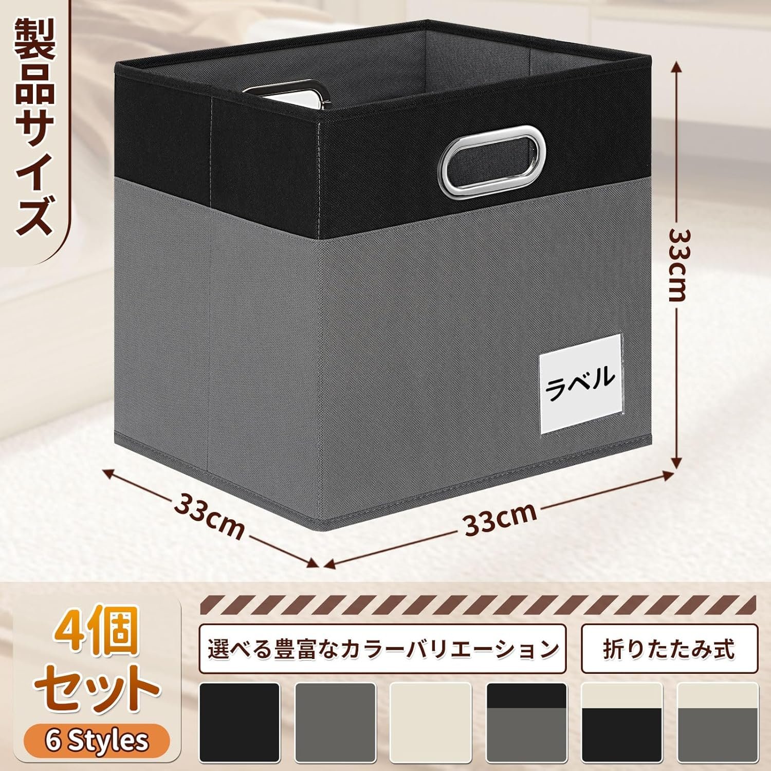 • 【大容量収納ボックス】収納ボックス4個セット、サイズ:幅33×奥行33×高さ33cm、整理整頓に多数のアイテムを収納できますあなたの持ち物や家族のオフィス。完璧なサイズと中間色は、家を整理しながら、ほと んどの家の装飾やスタイルにマッチします。