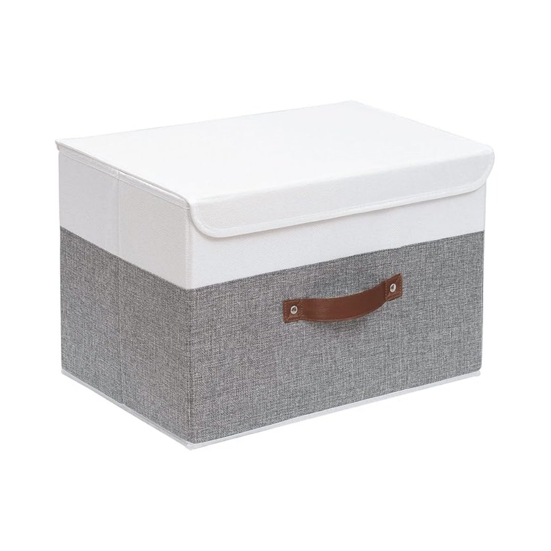 【収納ボックスハンドルのデザイン】衣類収納ビンには1つの幅広で厚みのあるフェイクレザーのハンドルが付いており、ブラウンのレザーのハンドルがクラシックな印象を与え、大きな収納ボックスを持ち上げたり移動させたりするのが容易で、壊れにくいです。