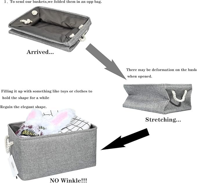 収納バスケットは折り畳んで配送されるため、しわが生じることがあります。服や毛布を入れて形を整えたり、スチームアイロンやヘアドライヤーでしわを伸ばすことができます。