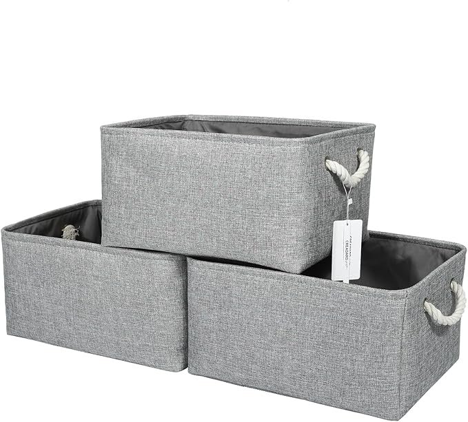 3つの収納バスケットセットのサイズは、15.74×11.81×8.27インチ(40×30×21 cm)。コンパクトながら十分な収納力を持ち、さまざまなアイテムを整理するのに最適です。
