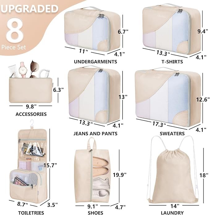 製品名: 旅行用8点式パッキングキューブ カスタマイズ可能