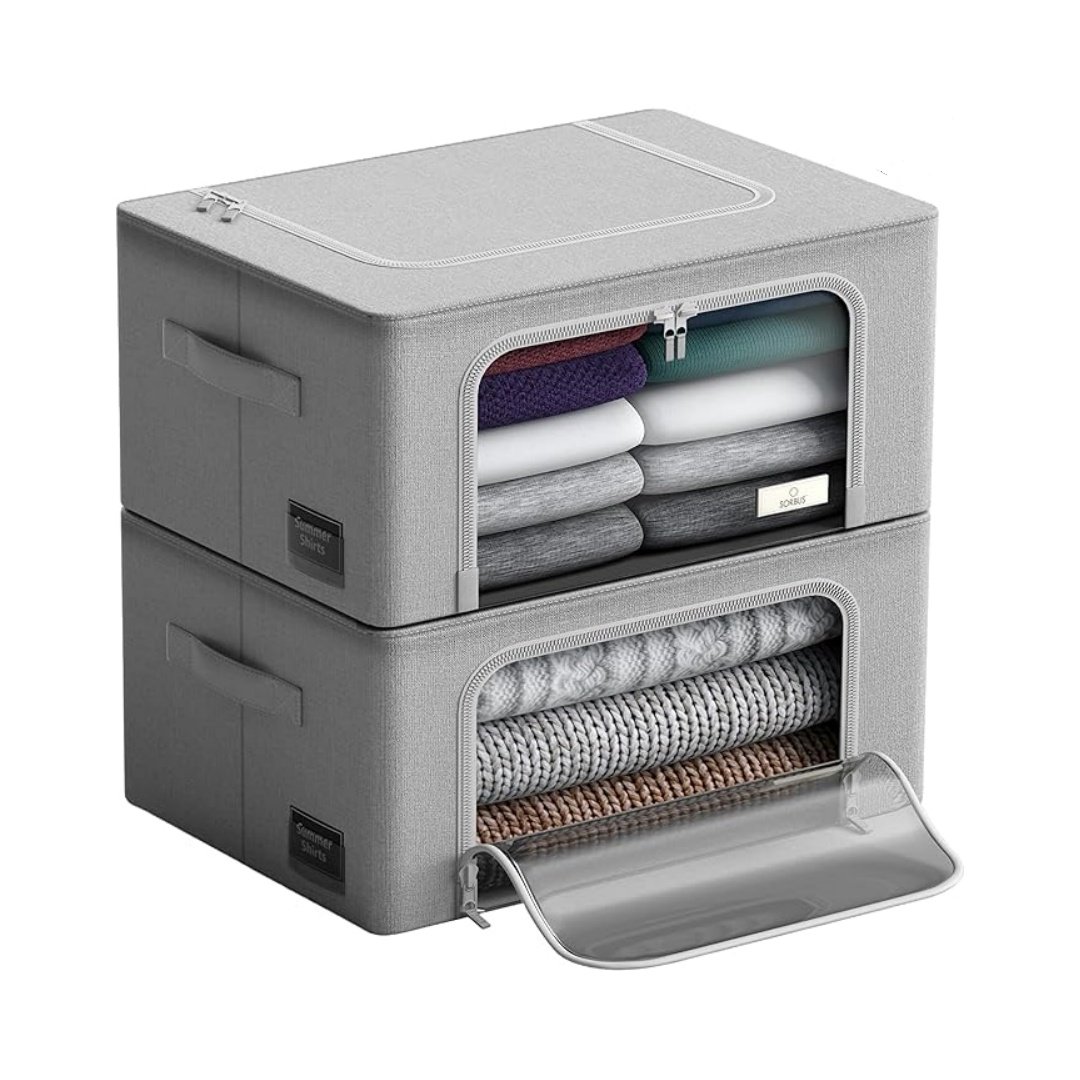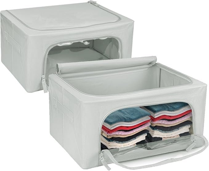 頑丈なフレームで他のオーガナイザーの上や下に重ねられます。折りたたみ式デザインで使用しないときはコンパクトに収納でき、棚、大きなチェスト、クローゼット、バッフェタンス、ガレージ、地下室、屋根裏、またはベッド下に収納できます。セットアップも簡単で、フレームを開くだけで大きなストレージビンができます。