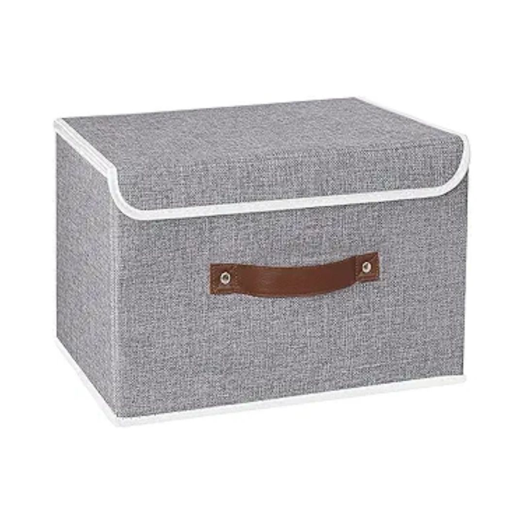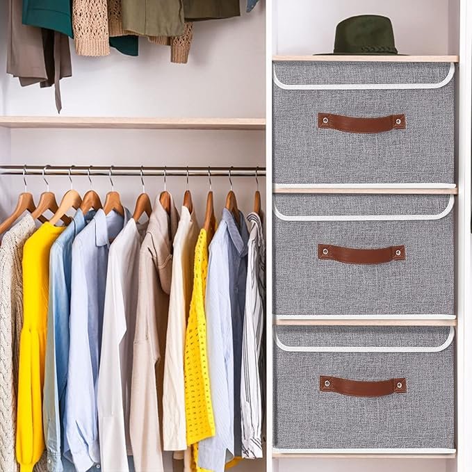 衣類収納ビンには1つの幅広で厚手のフェイクレザー製ハンドルが付いており、ブラウンのレザーハンドルがクラシックなタッチを加え、大きな収納ボックスを簡単に持ち上げたり移動させたりできます。壊れにくい設計です。