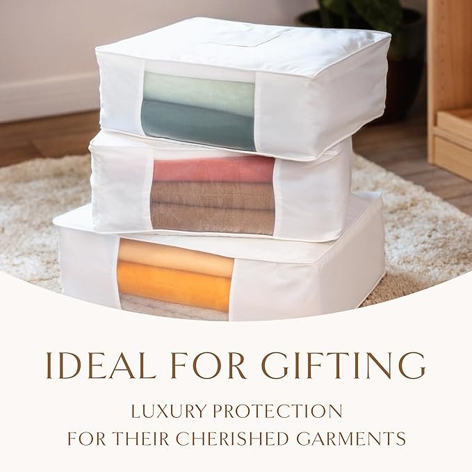 高品質な認証済みオーガニックコットンを使用しており、238本の糸密度があります。ジッパー付きのスウェットバッグは、あなたの大切な生地を優しく保護し、クローゼットのスウェットオーガナイザーとしても機能します。