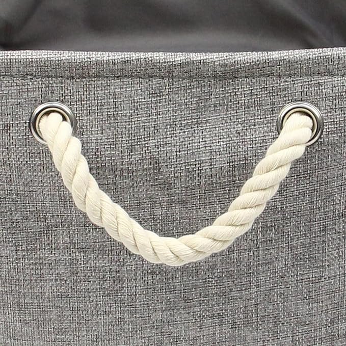 このストレージバスケットには、持ち運びやアクセスが簡単な2つのロープハンドルが付いています。ロープハンドルは棚やクローゼットへの出し入れがスムーズにでき、金属のアイレットでバスケットに取り付けられており、ハンドル自体は柔らかいコットンロープで作られています。