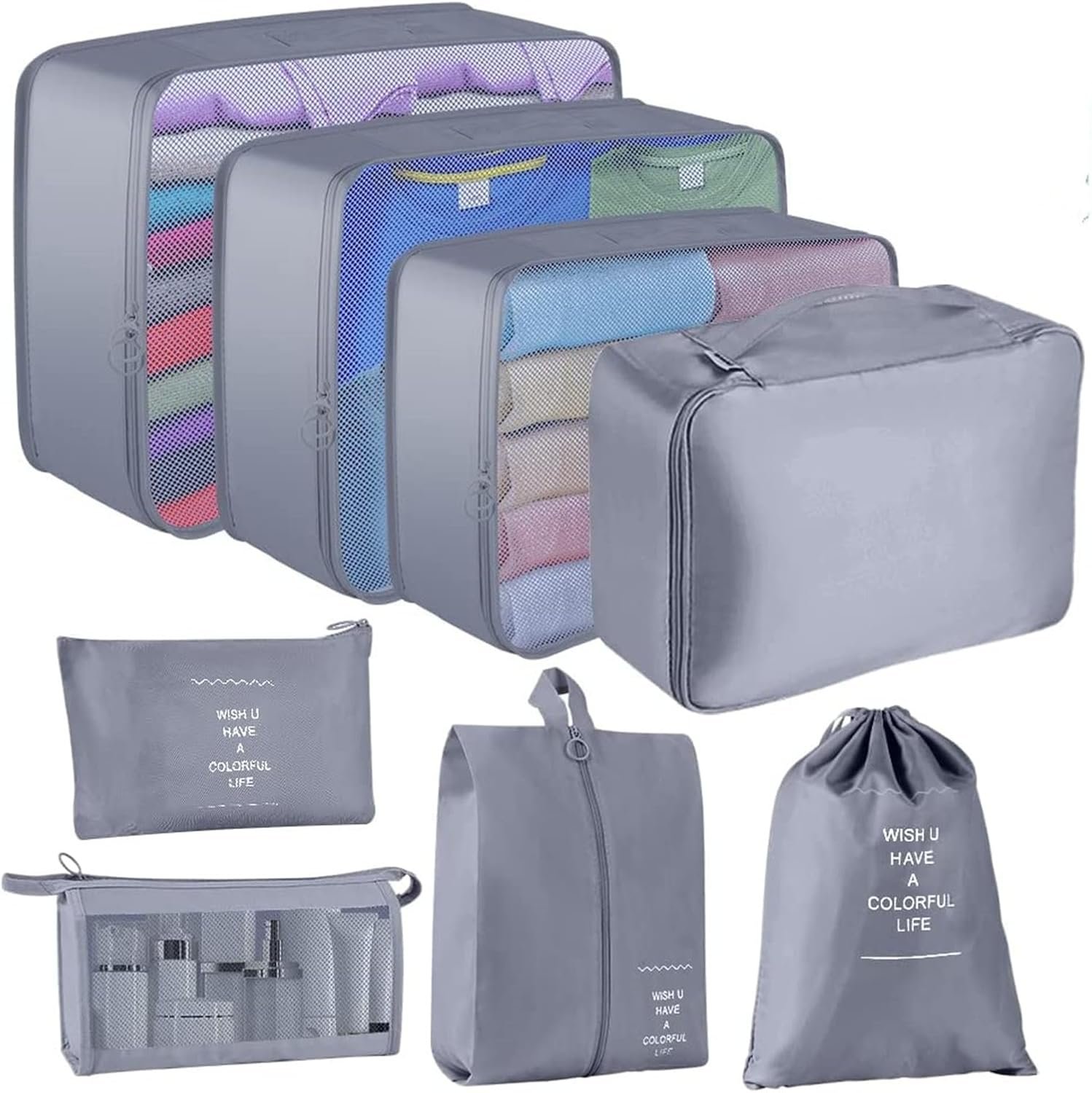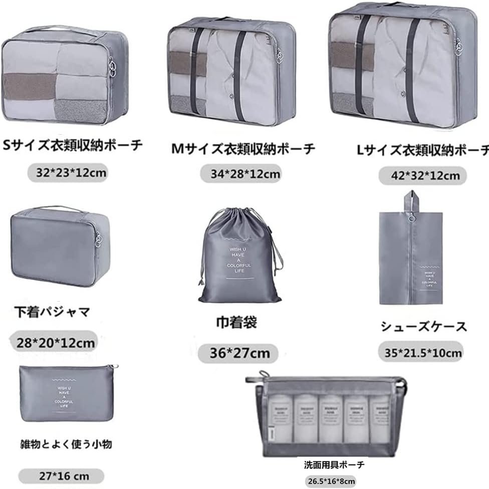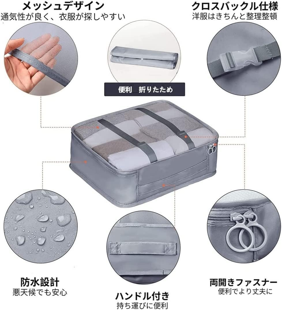 • 【収納が抜群】8点セットのトラベルポーチがあるから、細かく分けてすっきり整理でき、収納が抜群です。物を納めるだけではなく、靴、洗面用具、雑物とよく使う小物、汚い服ときれいな服などを区別して収納できます。実用的なバックル設計、衣類をしっかり固定、乱れにくいです。きれい、きちんとさせ、旅での気分を楽しくさせます。