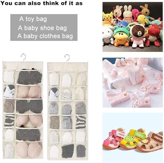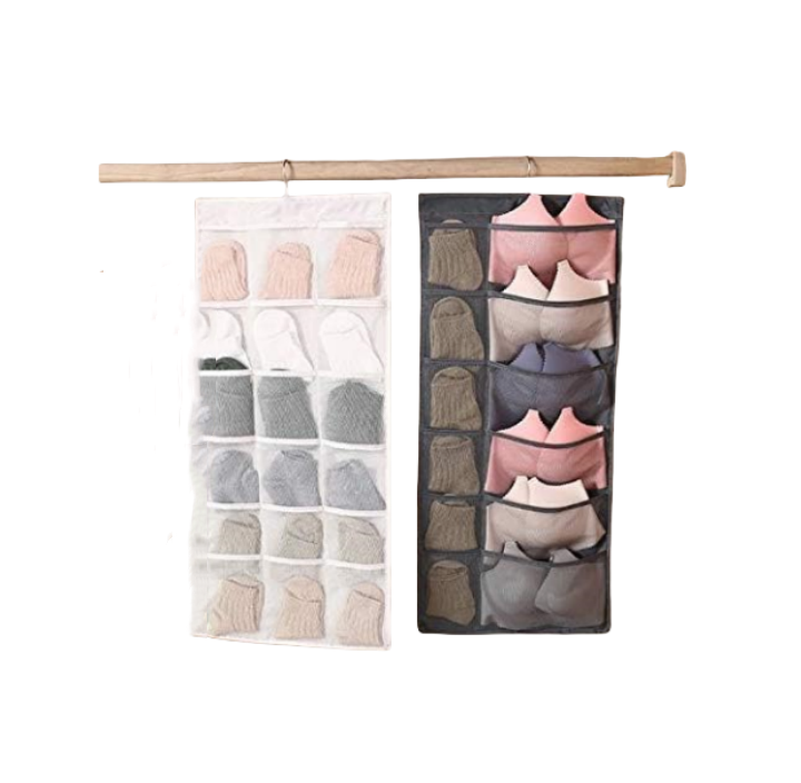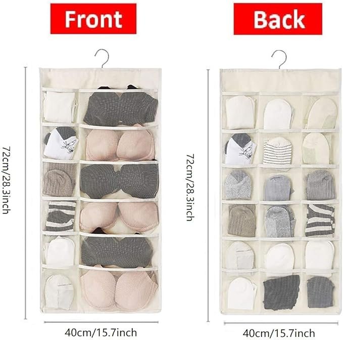 耐久性のある両面デザインのクローゼットハンギングオーガナイザー。通気性のあるメッシュプレミアムオックスフォード生地が、透明なポケットを通して素早く物を識別できるため、盲目的な探索の時間を節約します。